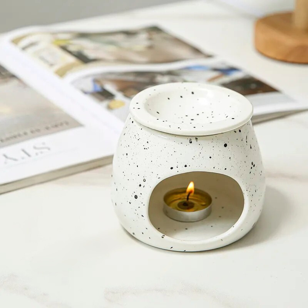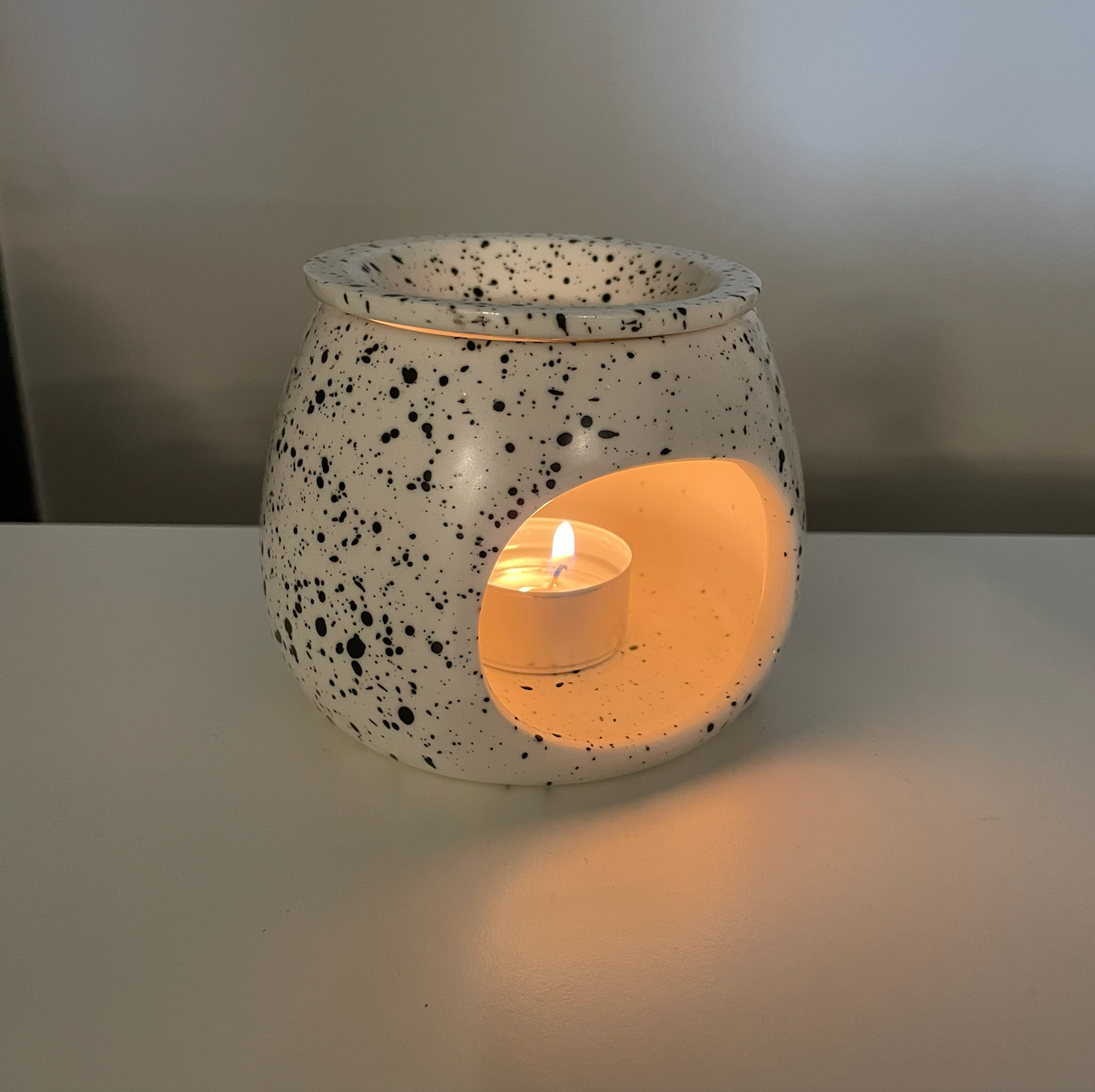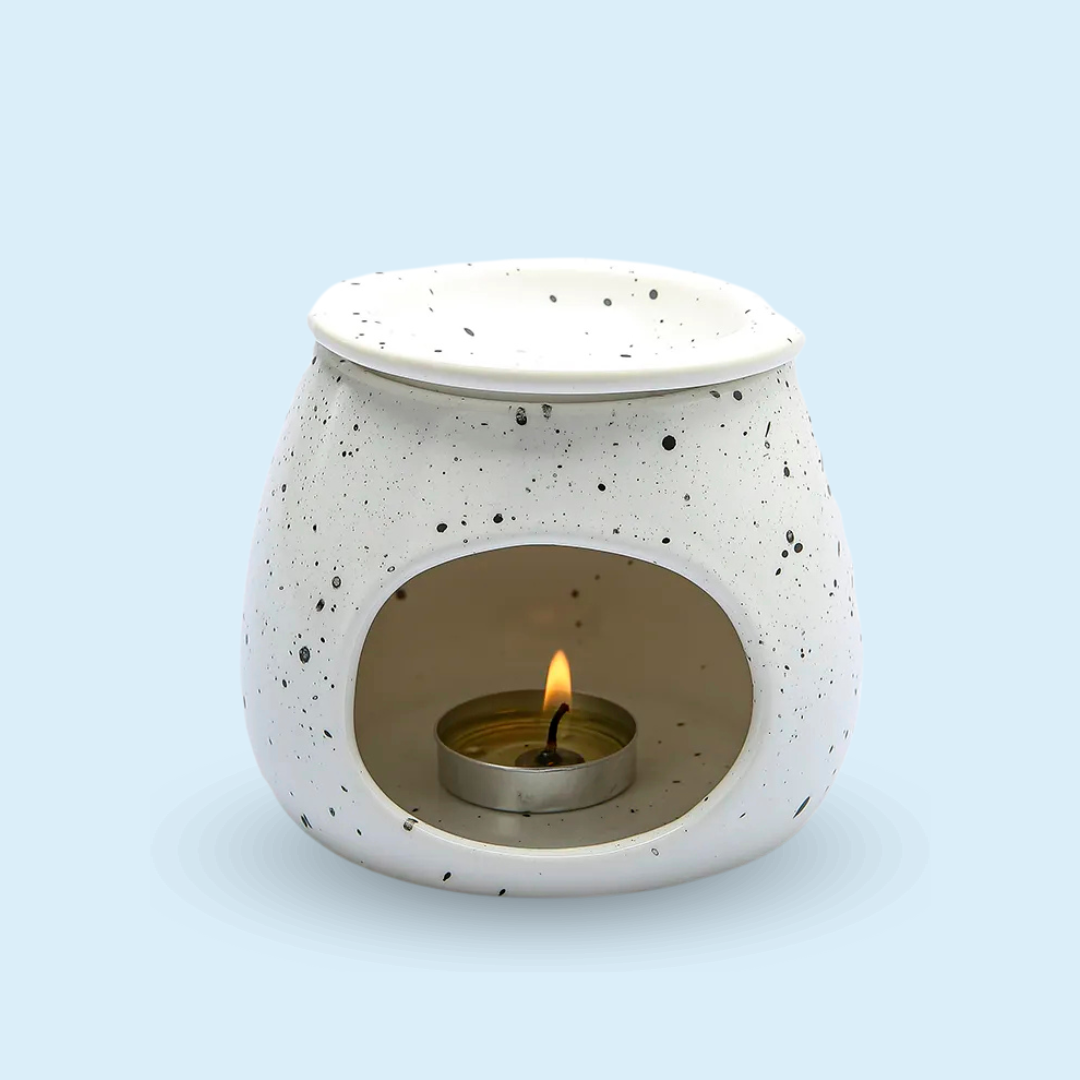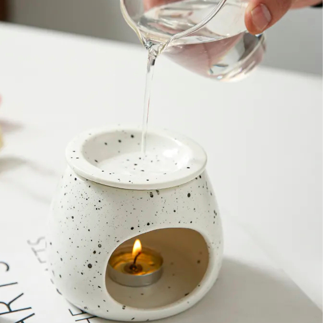 Placer et tændt fyrfadslys i brænderens nederste rum. Varmen fra lyset opvarmer vandet og frigiver langsomt lavendeloliens naturlige duft i rummet.