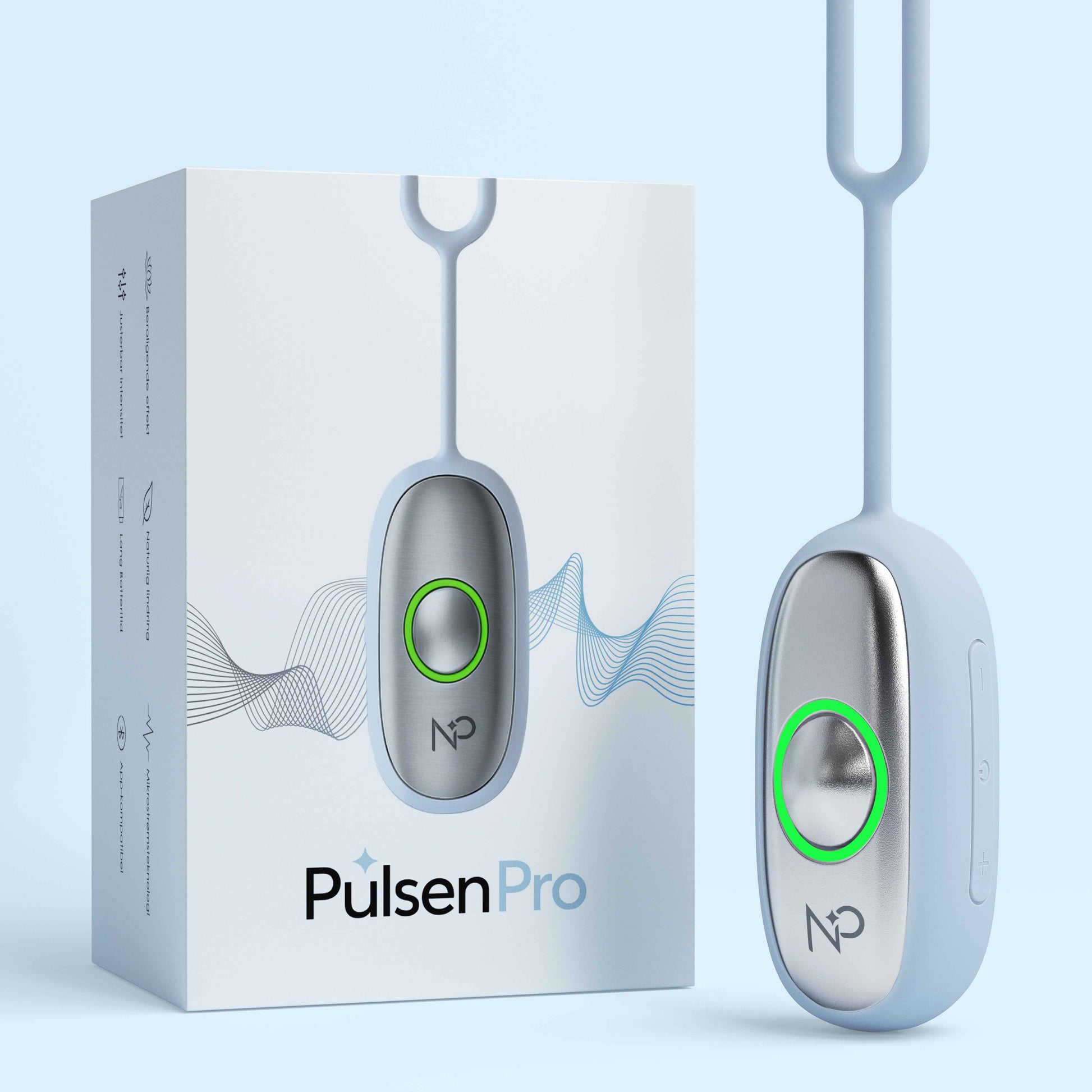 Pulsen™ Pro har alle funktionerne fra Original, men med flere forbedringer. Pro-modellen kan styres via NordiskPuls appen, hvor du kan tilpasse og gemme programmer, finjustere intensiteten samt selv vælge varigheden, hvis du ønsker længere eller kortere end de faste 20 minutter. Den har også en ekstra rolig frekvens, som er særligt god ved sengetid, forbedret batteri, tydelige lysindikatorer for batteri og Bluetooth samt et mere ergonomisk design.